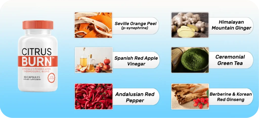 Developed with a focus on thermogenesis and metabolic activation, Citrus Burn uses a rare compound found in Seville orange peel combined with other powerful botanicals to help reignite the body’s natural fat-burning process — without harsh stimulants or extreme dieting. According to its creators, by breaking through what scientists now call “thermogenic resistance,” the body can once again enter a natural calorie-burning state.